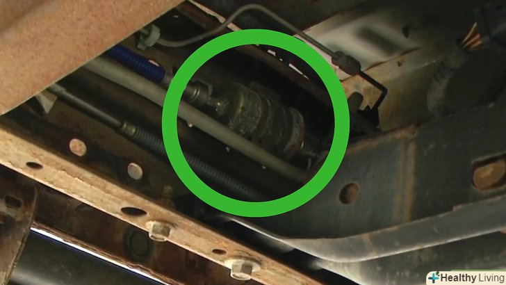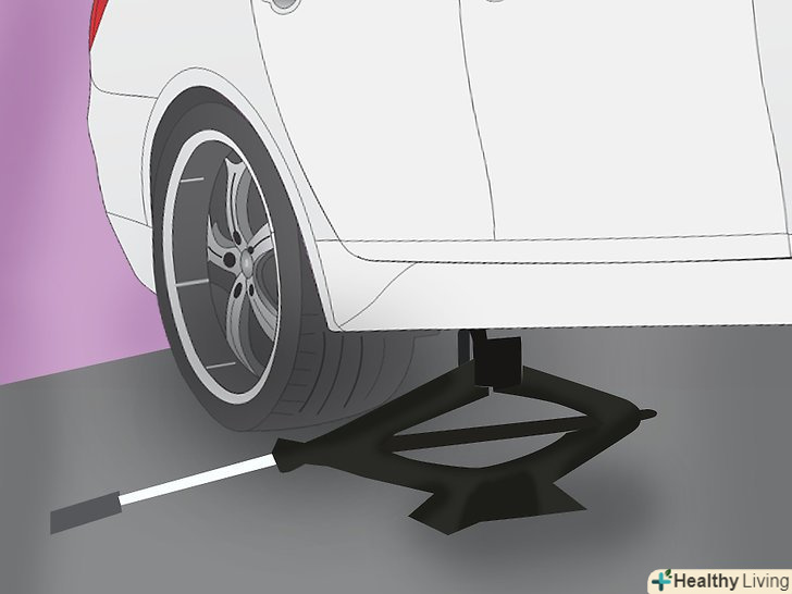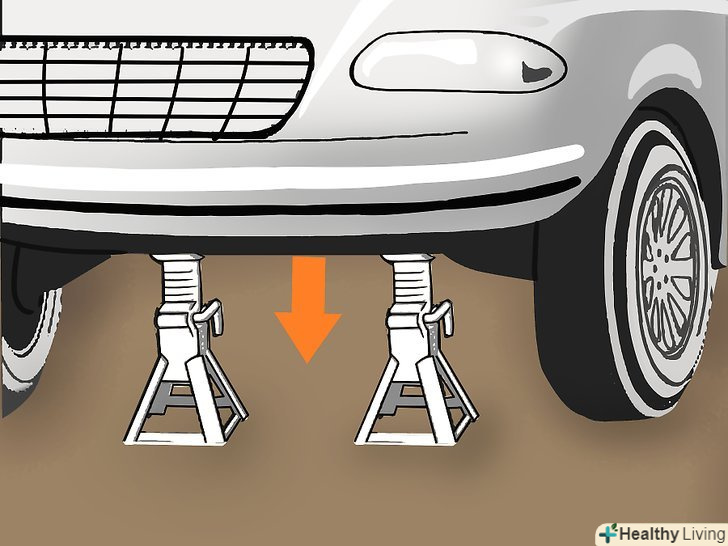 Підніміть автомобіль домкратом. якщо паливний фільтр знаходиться під машиною, потрібно підняти автомобіль домкратом. Встановіть домкрат в спеціальному місці для упору і включіть насос або почніть обертати важіль, щоб підняти автомобіль (залежить від типу домкрата).[9]- Після підйому на достатню висоту встановіть опори, щоб безпечно працювати під автомобілем.