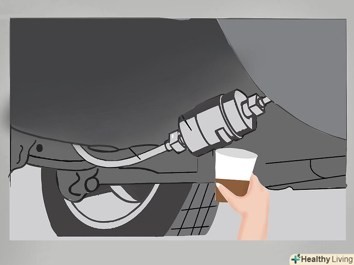 Поставте під паливний фільтр піддон або відро.незважаючи на скидання тиску в системі все ще може залишатися невелика кількість палива, яке може пролитися при відключенні паливного насоса. Використовуйте відро або піддон, щоб паливо не капало і не лилося на підлогу гаража.[10]- Не змішуйте паливо з маслом або охолоджувальною рідиною, яка буде використовуватися повторно. Бензин слід зібрати в окрему ємність, а потім перелити в каністру.