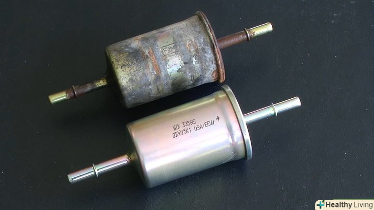 Знайдіть паливний фільтр.існує два поширених варіанти розташування фільтра в автомобілі, тому скористайтеся керівництвом з обслуговування. Найчастіше він знаходиться на топливопроводе під автомобілем відразу за паливним насосом. У ряді випадків фільтр може розташовуватися в моторному відсіку на трубопроводі, що веде до паливної рампи.[8]- Іноді паливний фільтр може перебувати в іншому місці, тому використовуйте довідник.