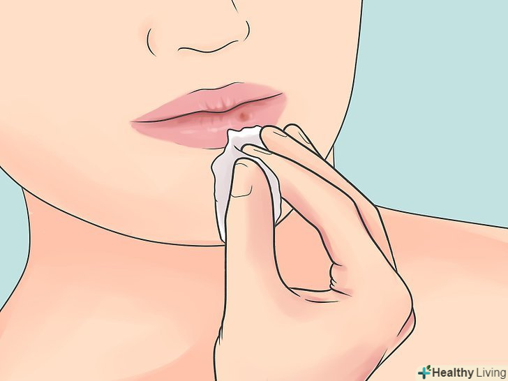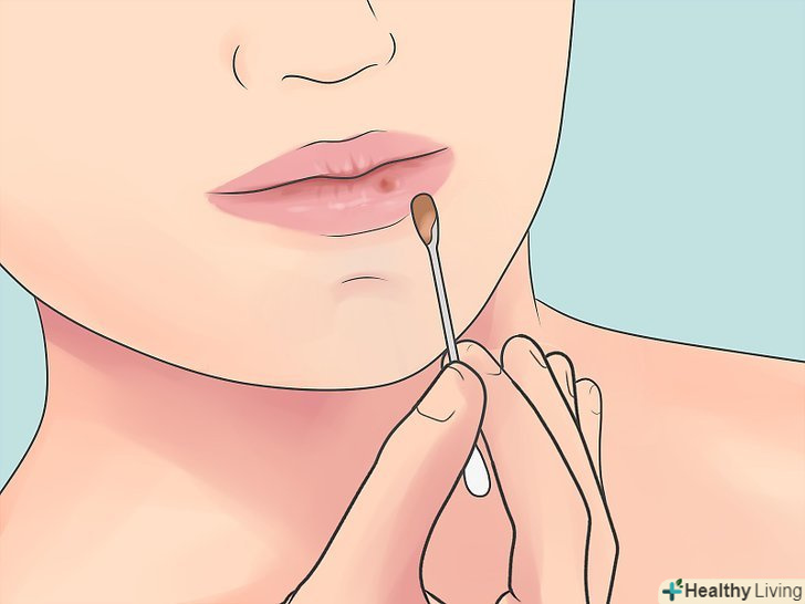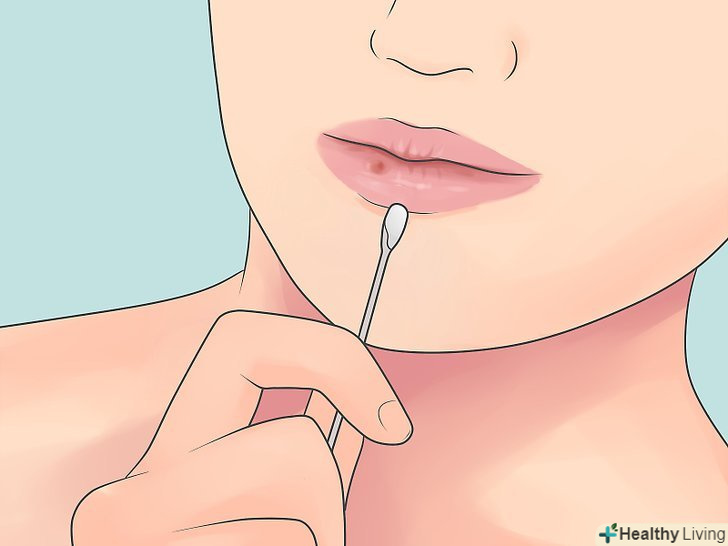Нанесіть розчин на уражене місце.занурте ватяну паличку в розчин і нанесіть її на герпес.- Змащуйте герпес круговими рухами в напрямку від центру до зовнішніх країв.