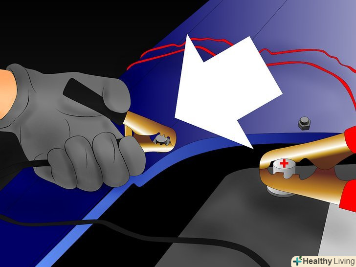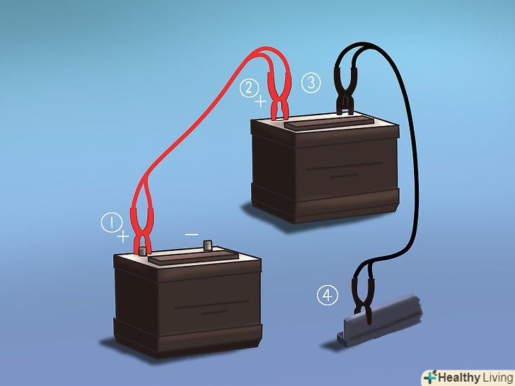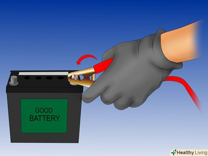 Приєднайте кабель наступним чином:- Один червоний затиск на + клему" мертвого " акумулятора.