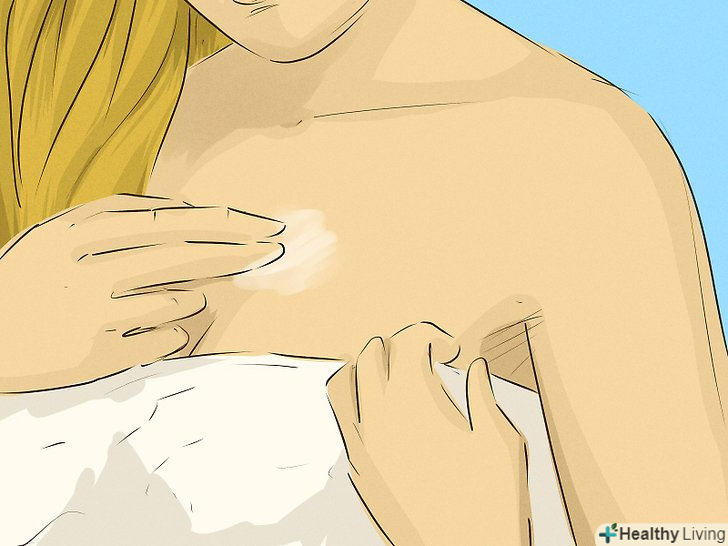 Переконайтеся, що шкіра відлущується, тобто мертві шари епідермісу, верхнього шару шкіри, видаляються. Відлущування допомагає запобігти поширенню висипки. Придбайте або зробіть самі скраб (відлущуючий засіб) для тіла, нанесіть його на шкіру грудей і поспостерігайте як зникає висип.- Вугровий висип на груди часто виникає через закупорених волосяних цибулин або пір, що призводить до накопичення шкірного жиру.[2] у чоловіків груди часто покрита волоссям, а жінки вважають за краще носити більш тугі ліфчики і топи. І те, і інше може привести до виникнення висипу, роблячи відлущування вкрай важливим.