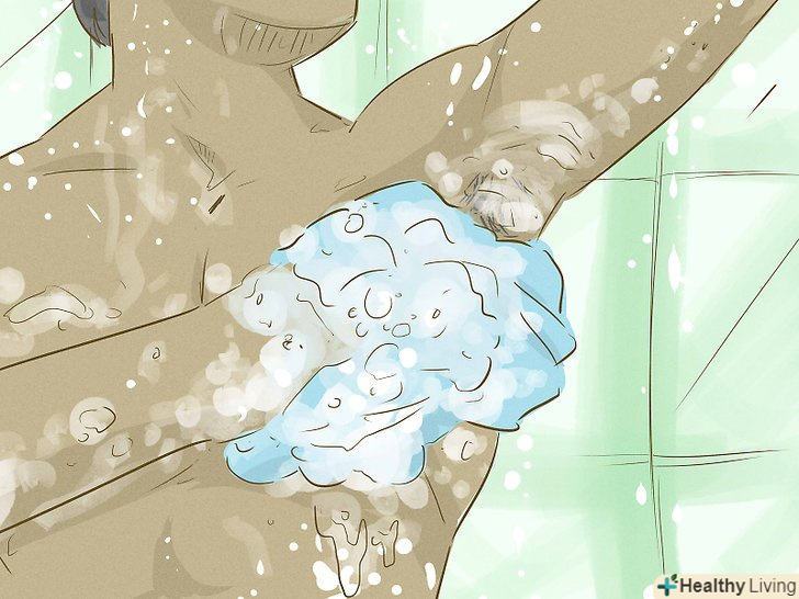 Виберіть спеціальне мило.приймаючи душ, користуйтеся жорсткою рукавичкою або мочалкою і гелем, що містить 2%-Ву саліцилову кислоту. Обов'язково міняйте мочалку хоча б раз в три місяці, так як в ній заводяться бактерії.- Гель з саліциловою кислотою трохи підсушує шкіру, і це допомагає зменшити висип.
