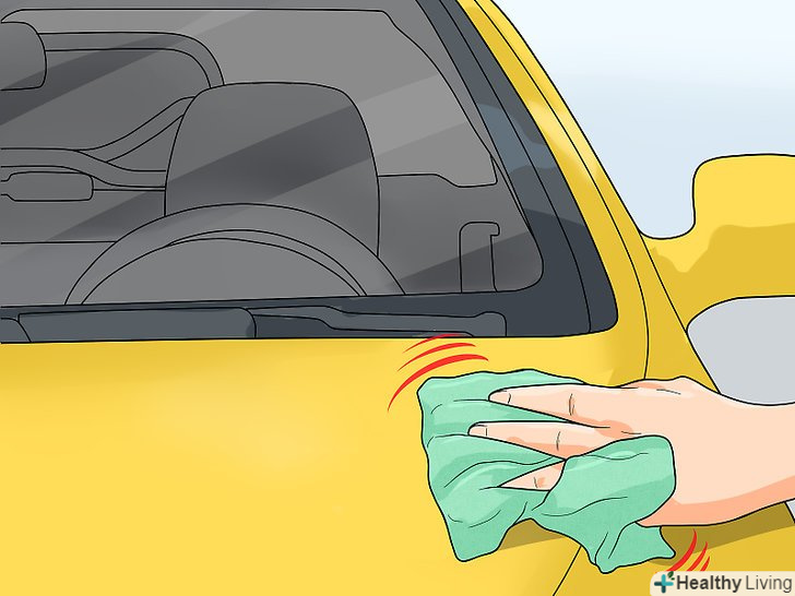 Натріть віск.видаливши аерозольну фарбу, відполіруйте поверхню автомобіля чистою тканиною з мікроволокна. Протріть вощену область невеликими круговими рухами.[15]