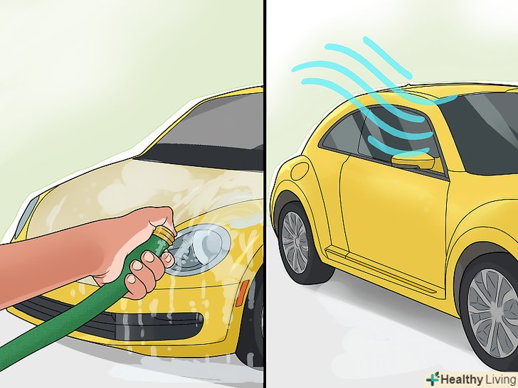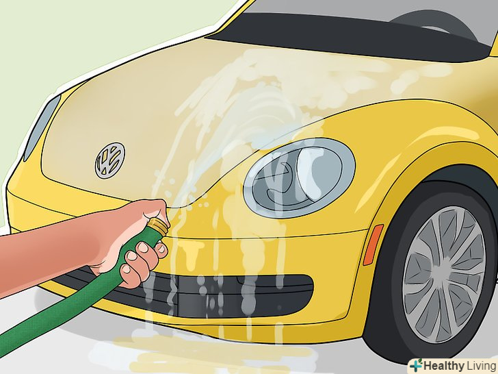 Помийте і висушіть машину.цей крок необхідний для видалення бруду з поверхні авто перед нанесенням глини. Помийте машину вручну або поїдьте на автомийку. Якщо аерозольна фарба була нанесена зовсім недавно, гаряча вода і мило можуть частково її видалити.[4]