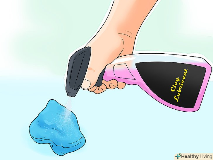 Нанесіть на глину мастильний матеріал.завдяки мастилі глина буде ковзати уздовж фарби, а не прилипати до неї. Збовтніть мастило, а потім розпорошите її на глину і на фарбу на машині. Не шкодуйте мастила, щоб глина не розмазалася по машині.[8]- Мастило для глини можна знайти в місцевому магазині автозапчастин.