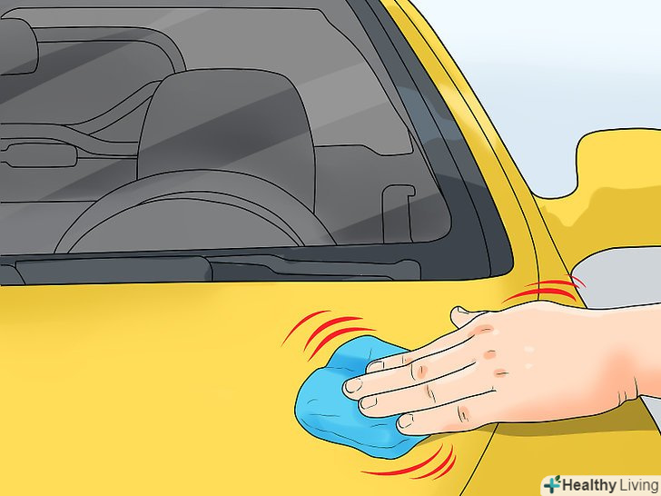 Витріть залишок.витріть шматки глини з автомобіля тканиною з мікроволокна. Злегка натискаючи рукою, протріть тканиною ту ділянку, де проводили глиною.[10]