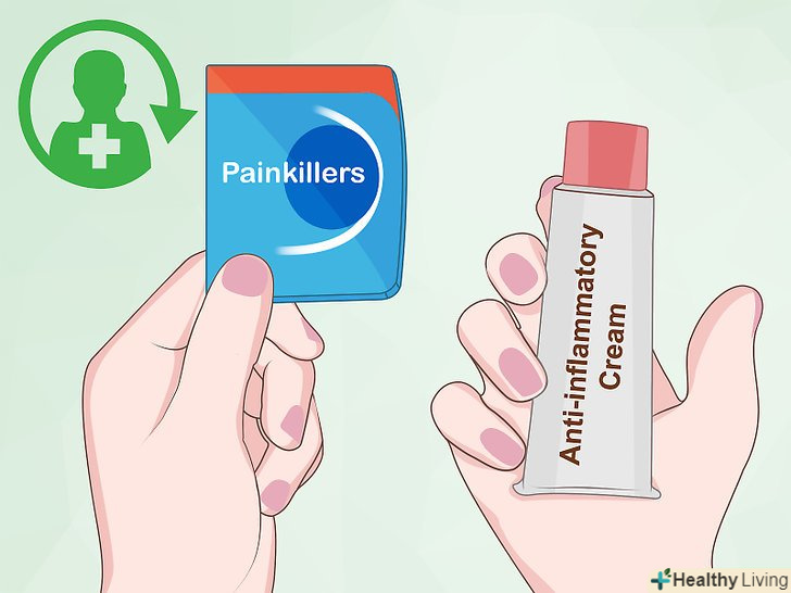 Запитайте дерматолога про болезаспокійливі та протизапальні креми.використовуйте ці кошти тільки в тому випадку, якщо лікар схвалив їх. Уважно дотримуйтесь інструкцій по застосуванню, щоб креми не викликали появи додаткових почервоніння або дрібних червоних точок (петехії). Перед нанесенням протизапального крему вмийтеся м'яким засобом.[7]