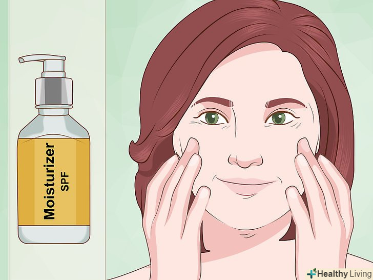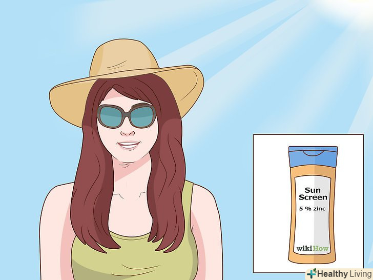 По можливості уникайте прямих сонячних променів.кожні три години наносите сонцезахисний крем повторно, поки шкіра повністю не відновиться. Також перед виходом на вулицю надягайте капелюх і сонцезахисні окуляри. Для кращого захисту шкіри від впливу сонця використовуйте зволожуючий крем з SPF-захистом 30 або вище.[1]- Шукайте сонцезахисний крем, що містить 5-10% цинку або титану, або 3% мексорилу.