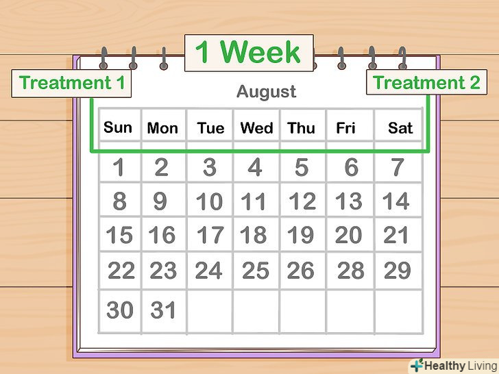 Між процедурами повинна пройти принаймні один тиждень.між процедурами дайте шкірі час на відновлення. Ви можете запланувати кілька процедур, але залиште між ними не менше тижня. Після декількох перших процедур можна знизити частоту проходження.[4]