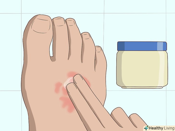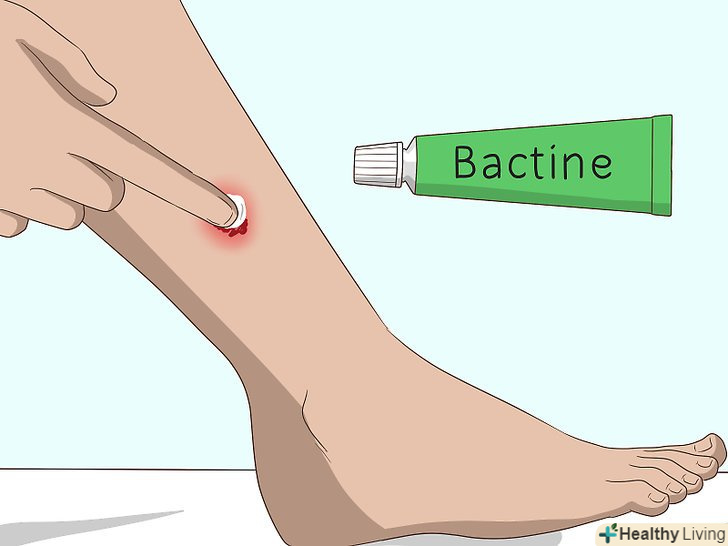 Нанесіть антисептичну мазь.шукайте безрецептурну антисептичну мазь в місцевій аптеці. Чистими пальцями наносите мазь 1-3 рази на день або згідно з інструкцією на упаковці. Мазь допоможе зберегти область зволоженою і запобіжить потраплянню бактерій в пошкоджену шкіру, дозволивши їй гоїтися.[2]- Можна використовувати такі антисептичні мазі, як» Левоміколь «або»Бепантен".