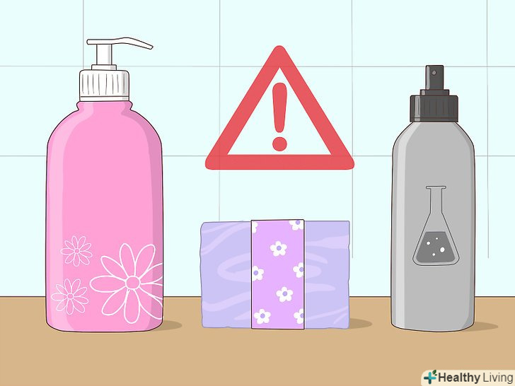 Намагайтеся не користуватися милом або лосьйонами з агресивними інгредієнтами або запахами.хімічні та штучні запахи можуть додатково дратувати шкіру. Не використовуйте мило, лосьйони і спреї, які містять такі інгредієнти, щоб дозволити шкірі гоїтися.[11]- Читайте склад всіх засобів, мила або лосьйонів, щоб переконатися, що вони не містять агресивні хімічні речовини або добавки.