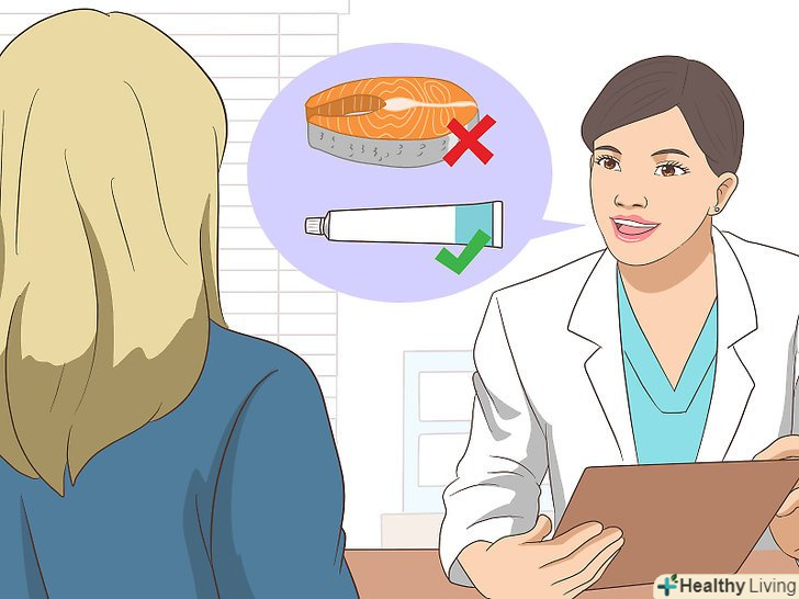 Обговоріть варіанти лікування.лікар-дерматолог може виписати антисептичну мазь, якщо шкірні проблеми викликані висипом або алергічною реакцією. Він також може порадити утримуватися від продуктів або речовин, які можуть викликати шкірну алергію.[14]