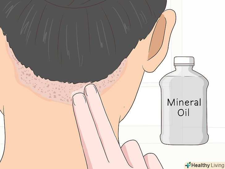 Застосовуйте мінеральне масло та вазелін для лікування сухості або екземи.мінеральне масло допомагає зберігати шкіру вологою і м'якою. Вазелін також підходить, оскільки він лягає на шкіру товстим захисним шаром, щоб вона ще більше не висохла. Чистими пальцями наносите мінеральне масло або вазелін на уражені області 1-3 рази на день.[15]