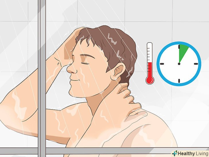 Регулярно приймайте нетривалі душі або ванни для зволоження шкіри.закривайте двері ванної кімнати, коли ви приймаєте душ або ванну, щоб приміщення було вологим. Приймайте душ або ванну протягом 5-10 хвилин з теплою, а не гарячою водою.[18]- Довге перебування в гарячому душі або ванній може ще більше висушити шкіру і викликати її подальше роздратування.