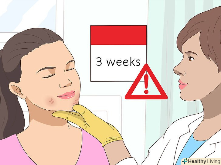 Зверніться до лікаря-дерматолога, якщо стан шкіри не покращиться протягом 2-3 тижнів.якщо домашні засоби не можуть поліпшити стан шкіри, зверніться за допомогою до дерматолога. Він зможе виписати лікувальний крем для лікування екземи і дуже сухої шкіри. Він також може запропонувати внести зміни в спосіб життя і харчування, щоб вирішити цю проблему.[22]