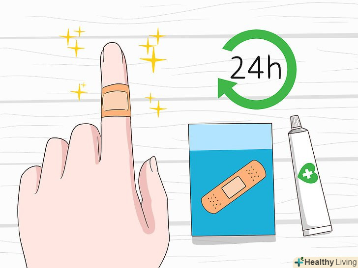 Змінюйте пов'язку 1 раз в день і тримайте поріз або подряпину захищеною.щоб поріз або подряпина заживала швидко, накладайте свіжу пов'язку кожні 24 години. Видаліть стару пов'язку і нанесіть на поріз антисептичну мазь. Потім накладіть нову пов'язку. Переконайтеся, що поріз або подряпина постійно закрита, щоб вона залишалася вологою і гоїлася швидше.[4]- Переконайтеся, що розріз або подряпина закриті, якщо ви виходите на вулицю і піддаєте шкіру впливу сонця. Сонце може знебарвити поріз або подряпину, що сповільнить загоєння.