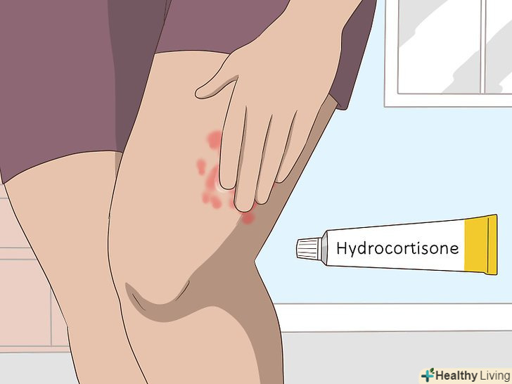Нанесіть мазь гідрокортизону.Гідрокортизон допомагає зменшити почервоніння і набряк шкіри. Мазь гідрокортизону можна знайти в місцевій аптеці. Наносите на шкіру крем 1-2 рази на день чистими пальцями.[7]- Припиніть використовувати мазь гідрокортизону після загоєння рани, оскільки використання мазі на здоровій шкірі може викликати її почервоніння.