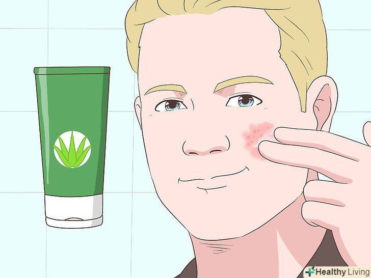Нанесіть алое вера або календулу на роздратовану шкіру.придбайте алое вера у вигляді гелю або мазі. А також можна прикладати на шкіру свіжий сік алое вера. Нанесіть 1-2 шари алое вера на шкіру один або два рази на день, щоб допомогти шкірі зцілити.[8]- Календула зазвичай випускається у формі мазі. Наносите її чистими пальцями на уражену область 1-2 рази на день. Шукайте мазь з календулою в магазинах косметики або аптеках.