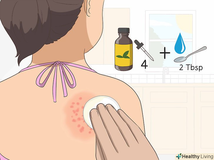 Для заспокоєння шкіри зробіть компрес з масла чайного дерева.олія чайного дерева має антибактеріальні та протизапальні властивості, які допомагають загоювати роздратовану шкіру. Розведіть масло чайного дерева перед використанням, оскільки воно може бути дуже концентрованим. Змішайте 2-4 краплі олії з 15-30 мл води. Занурте ватний диск або чисту тканину в суміш і промокніть подряпину або поріз. Повторюйте щодня, поки шкіра не заживе.[9]- Шукайте масло чайного дерева в аптеці, аюрведичному магазині або в Інтернеті.