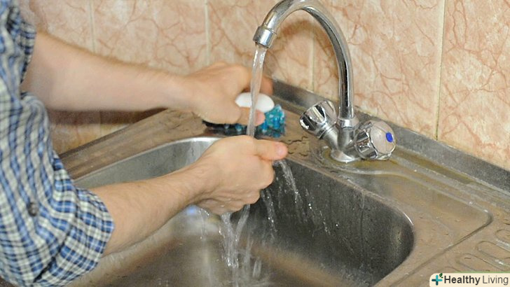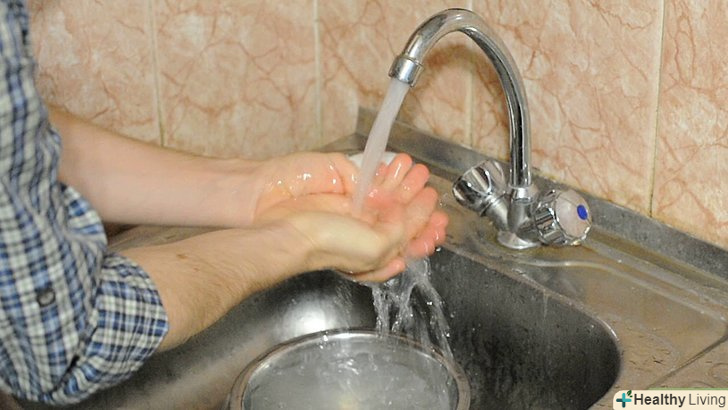 Змийте пасту з рук за допомогою води і мила.зачекайте, поки паста висохне, після чого намильте руки милом. Підставте руки під проточну воду, щоб змити пасту.- Не забудьте почистити під нігтями. Сода видалить соки халапеньо, які залишилися під нігтями.