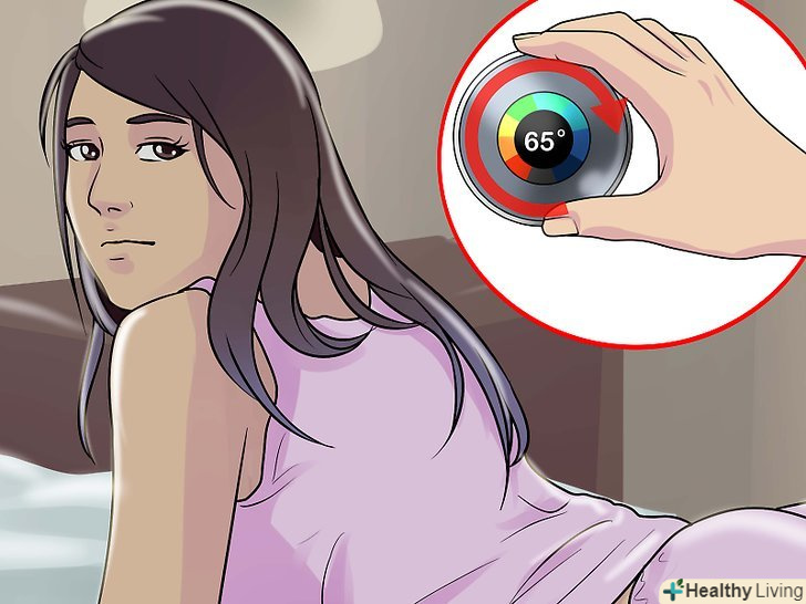Вимкніть опалення.якщо на вулиці зима, а у вас включений обігрівач, спробуйте на час зменшити температуру, щоб в будинку було прохолодно, поки ви одужуєте.[3]- Якщо зима тут ні при чому, і температуру ніяк не зменшити, скористайтеся вентилятором. Обприскуйте себе водою перед вентилятором, щоб відчути приємну свіжість.