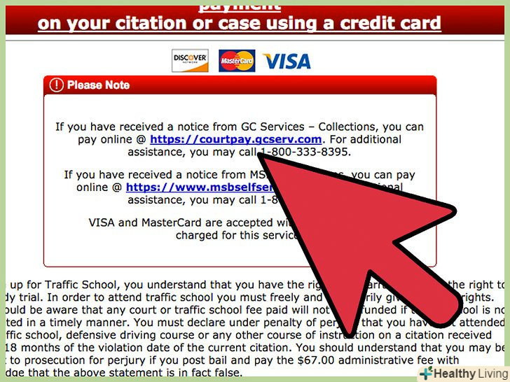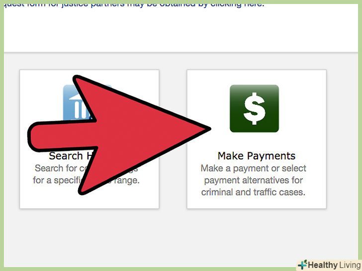 Натисніть на посилання "заплатити". ви побачите посилання "заплатити штраф«,» виплата штрафу" або щось подібне.- На більшості сайтів є посилання для виплати штрафу із зазначенням дати явки до суду або запиту на проходження водійських курсів.