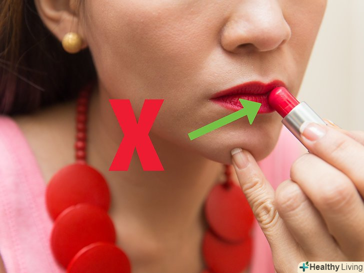 Не користуйтеся помадою зовсім або користуйтеся тільки зволожуючою.перед тим як нанести помаду, акуратно натріть губи зволожуючим і захисним маслом.[21] або ж нанесіть бальзам для губ з SPF не нижче 15.