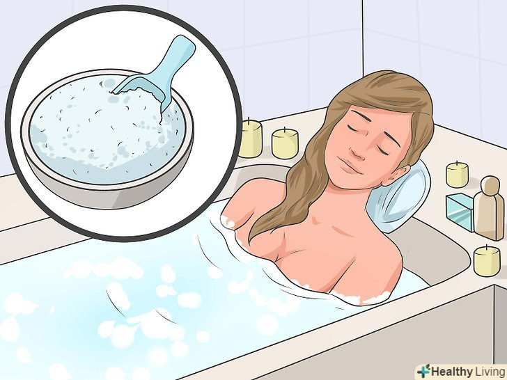 Прийміть перед сном теплу ванну з вівсом або харчовою содою.у вівсі містяться авенантраміди-натуральні антиоксиданти, які зменшують запалення і почервоніння шкіри і допомагають вгамувати свербіж.[12]- Подрібніть вівсяні пластівці в блендері і поступово засипте в ванну, поки в неї набирається вода. Після цього полежіть у ванні хоча б 15 хвилин, перш ніж відправитися спати.