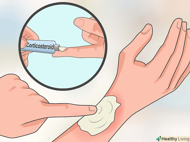 Нанесіть на проблемне місце кортикостероїдний крем.кортикостероїди впливають на роботу клітин і різних речовин в шкірі і тим самим ефективно знімають запалення. Якщо свербіж викликаний запальним захворюванням, наприклад екземою, спробуйте використовувати кортикостероїдний крем.[4]- При використанні кортикостероїдного засобу можна накласти зверху змочену водою вологу бавовняну тканину, щоб шкіра краще вбирала крем.[5]