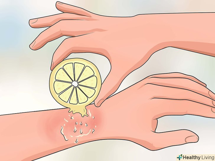 Наносите на роздратовану ділянку лимонний сік.у лимонах містяться ароматичні речовини, які мають анестезуючі та протизапальні властивості. Наносите перед сном лимонний сік, щоб полегшити свербіж і краще спати.[15]- Видавіть на сверблячу ділянку нерозбавлений лимонний сік і почекайте, поки він висохне, перш ніж лягати спати.