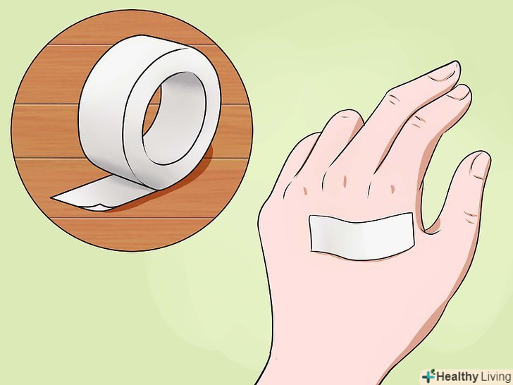 Наліпіть на бородавку скотч.існує безліч свідчень (і кілька наукових досліджень) того, що нанесення на бородавки звичайного скотча є досить ефективним методом, хоча принцип його дії залишається не зовсім ясним.[7] у досліджень 2002 року було виявлено, що 85% людей, які використовували скотч, позбулися бородавок протягом місяця, і даний спосіб виявився більш ефективним, ніж кріотерапія.[8] тому спробуйте наліпити на бородавку на долоні скотч, потім зніміть його, видаліть відмерлу тканину за допомогою пемзи або пилочки для нігтів і поспостерігайте, чи виросте бородавка знову. Можна повторити цю процедуру кілька разів. Даний метод хороший тим, що він дешевий і не має неприємних побічних ефектів.- Протріть шкіру медичним спиртом, після чого акуратно наліпіть невеликий клаптик скотча на бородавку. Залиште його на 24 години, після чого замініть свіжим клаптиком скотча. Проробляйте цю процедуру раз в тиждень аж до шести тижнів, якщо знадобиться.