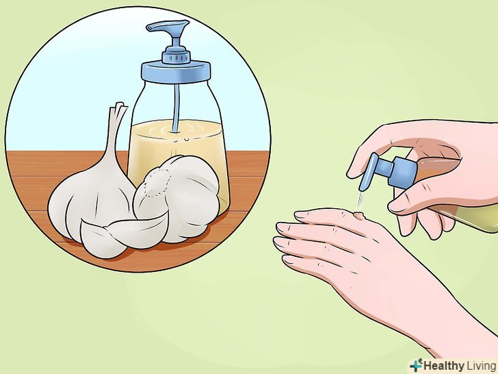 Спробуйте прикладати до бородавки екстракт часнику.часник є ще одним давнім домашнім засобом, який використовується для лікування багатьох хвороб. До складу часнику входить органічна сполука алліцин, яке має сильну протимікробну дію і вбиває багато мікроорганізмів, в тому числі і ВПЛ.[10] у дослідженні 2005 року було виявлено, що екстракт часнику дозволяє повністю позбутися від бородавок за кілька тижнів, після чого вони не з'являлися повторно протягом багатьох місяців.[11] перетертий сирий часник або покупної екстракт часнику можна наносити прямо на бородавку на долоні кілька разів на день протягом 1-2 тижнів. Після нанесення прикрийте бородавку бинтом на кілька годин, потім можна нанести свіжий часник. Краще наносити часник перед сном, щоб за ніч алліцин глибоко вбрався в бородавку.- Як і у випадку з яблучним оцтом, часник може викликати легке печіння або невеликий набряк шкіри навколо бородавки, однак це швидко проходить. І звичайно пам'ятайте про те, що часник має сильний запах.