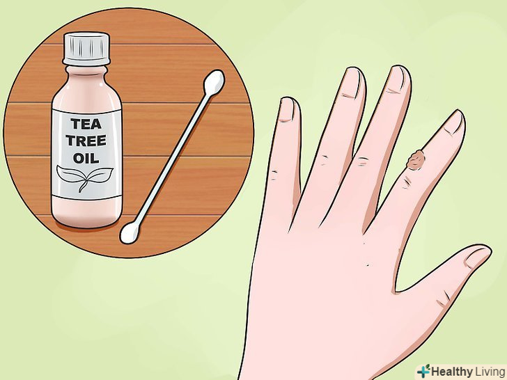 Не забувайте про олію чайного дерева.ця олія являє собою екстракт листя чайного дерева (Melaleuca Alternifolia). Воно може виявитися корисним при виведенні бородавок та інших дефектів шкіри завдяки своїм сильним протимікробним і антивірусним властивостям, які допомагають знищити ВПЛ. Однак схоже на те, що масло чайного дерева не проникає в бородавки так само добре, як яблучний оцет, екстракт часнику або масло туї.[13] проте, масло чайного дерева зміцнює також імунну систему, якщо приймати його всередину, що допомагає запобігти повторному зараженню ВПЛ. Для початку спробуйте наносити на бородавку на долоні 2-3 краплі ефірного масла чайного дерева 2 рази на день протягом хоча б 3-4 тижнів і подивіться, чи допомагає воно. Для більшого ефекту можна попередньо терти виступаючу частину бородавки пемзою або пилкою для нігтів.- Масло чайного дерева протягом декількох століть використовувалося в Австралії і Новій Зеландії. На Заході воно стало популярним останні 10 років.