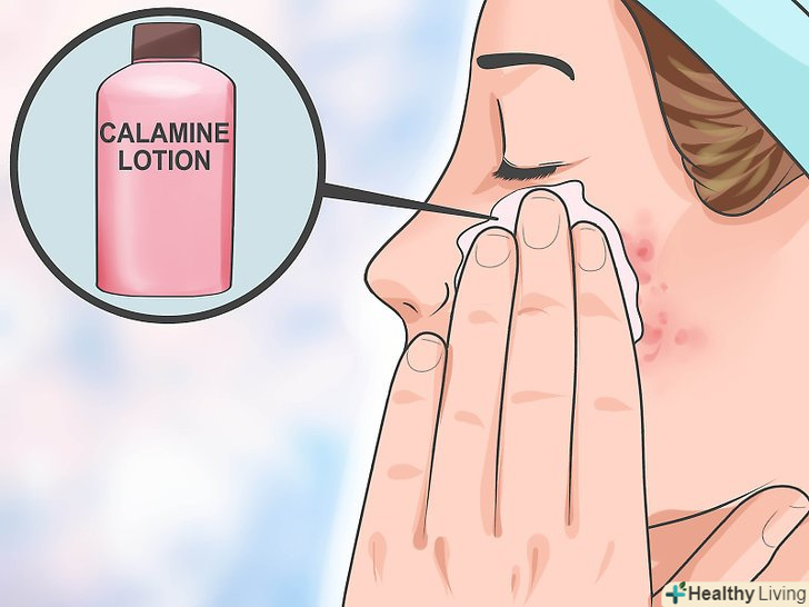 Наносите на шкіру рідину від сонячних опіків або крем від сверблячки.відпускаються без рецепта рідина від сонячних опіків ("каламін-лосьйон") і крем від сверблячки допомагають полегшити симптоми бульбашкового дерматиту. Ці кошти можна придбати в найближчій аптеці або замовити через Інтернет.- Креми, що відпускаються без рецепта, від сверблячки з гідрокортизоном допомагають полегшити свербіж. Слідкуйте, щоб в кремі містилося не менше 1% гідрокортизону.
