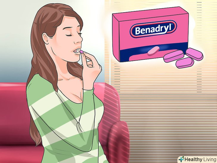 Приймайте антигістамінні засоби, щоб зменшити запалення і свербіж.ці засоби блокують гістамін, який викликає алергічну реакцію, і тим самим допомагають полегшити свербіж і запалення шкіри. У продажу є безліч як безрецептурних, так і відпускаються за рецептом антигістамінних препаратів, їх можна придбати в аптеці або замовити через Інтернет. Перш ніж приймати будь-який новий препарат, проконсультуйтеся з лікарем, так як він може дати небажані побічні ефекти або взаємодіяти з іншими ліками.- Хлорпірамін ("Супрастин") випускається у вигляді таблеток з дозуванням по 25 міліграмів. Дорослим можна приймати по 1 таблетці 3-4 рази на день. Добова доза не повинна перевищувати 100 міліграмів.