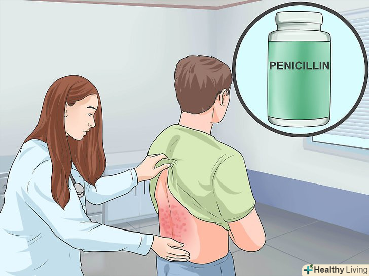 Приймайте призначені лікарем антибіотики, щоб позбутися від інфекції.якщо в уражену пухирями і висипом шкіру проникне інфекція, лікар може виписати антибіотики. Якщо ви помітите такі ознаки інфекції, як почервоніння, набряк, шкірний жар або гнійні виділення, повідомте про це лікаря.- Лікар може призначити різні антибіотики, наприклад антибіотики групи пеніциліну, кліндаміцин ("Далацин"), "еритроміцин" або "доксициклін".[28]