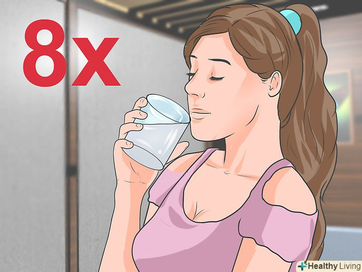 Підтримуйте водний баланс організму і пийте достатньо води.це допоможе запобігти сухості шкіри. Випивайте щонайменше 8 склянок (2 літри) води в день, щоб уникнути зневоднення і зберегти шкіру вологою.[15]