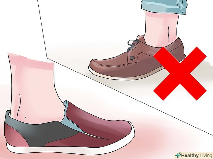 Намагайтеся не носити тісне взуття, щоб уникати тертя ноги об взуття.носіть зручне взуття та зручні шкарпетки, які добре сидять на нозі. Гумове взуття набагато м'якше, ніж шкіряне. На додаток до всього, жінки, часто носять взуття на високих підборах, дуже ризикують заробити собі мозолі. Високі підбори зосереджують всю вагу тіла на пальцях. Пальці набрякають, і мозолі просто неминучі.[5]- Ходіння босоніж, як і носіння незручного взуття, може легко привести до появи мозолів. Взуття необхідне не тільки через міркування гігієни, але і через фізіологічну будову наших ніг.