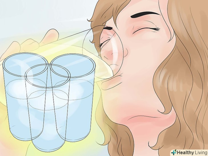 Пийте багато води.лікарі рекомендують випивати в день від 9 до 12 склянок води (близько 2-3 літрів), в залежності від вашого статі.[1] Ваша шкіра-орган вашого тіла і так само, як і нирки, вона потребує достатньої кількості води, щоб добре функціонувати.