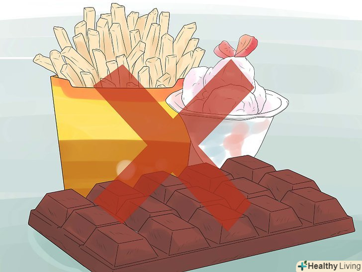 Виключіть зі свого раціону солодощі, соки, лимонади і смузі.десятиліттями вчені не можуть прийти до єдиної думки з цього приводу, проте останні дослідження все ж вказують на те, що, ви позбудетеся від прищів, якщо перестанете вживати цукор.[2] крім того, цукор викликає перепади в рівні інсуліну, через що можуть з'являтися прищі.