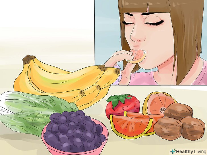 Переконайтеся, що ви щодня з'їдаєте від 5 до 9 видів овочів (особливо листяних).[2] Люди, які вживають багато фруктів і овочів і п'ють менше молока, а також обмежують споживання цукру, стикаються з проблемою прищів набагато рідше.