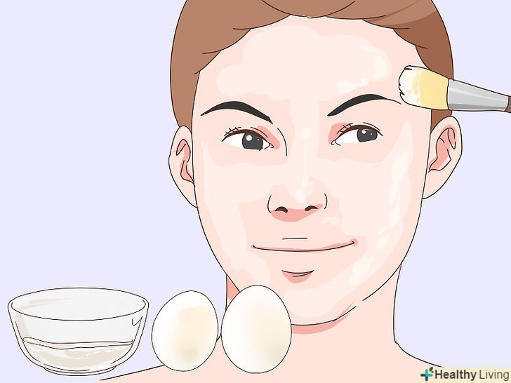 Зробіть маску з яєчного білка.яєчні білки допомагають зменшити почервоніння і стягнути шкіру, що дуже важливо при лікуванні акне. Відокремте яєчні білки від жовтків, а потім збийте їх до утворення піни. Нанесіть готову маску на область прищів. Залиште на 15 хвилин, а потім змийте теплою водою.[15]- Також можна додати свіжий лимонний сік в маску з яєчним білком.