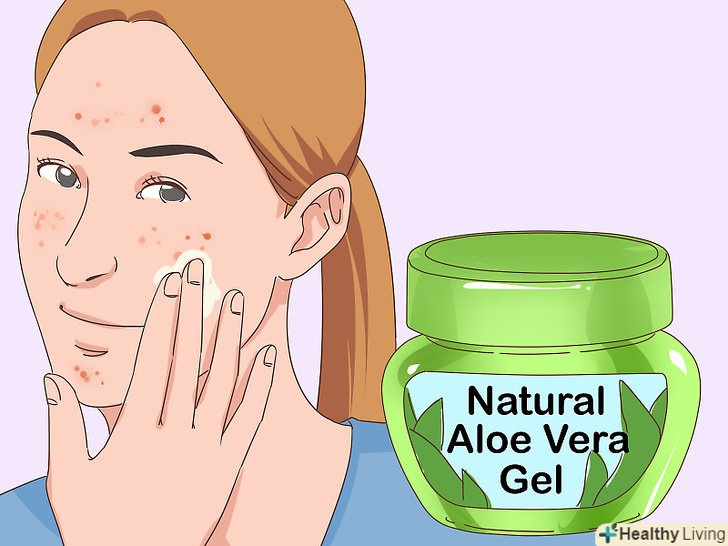 Використовуйте алое вера.алое вера зменшує запалення, допомагає видалити надлишки масла і охолоджує шкіру. Завдяки цьому алое віра є відмінним засобом для лікування акне. Візьміть лист алое і відріжте від нього невеликий шматочок. Використовуйте м'якоть листа. Подрібніть м'якоть листа до отримання маси пастоподібної консистенції. Нанесіть отриману пасту на область прища.[16]- Якщо ви купуєте гель Алое вера, використовуйте тільки натуральний засіб. Купуйте гель Алое вера тільки в магазині, в якому продаються натуральні продукти. Не купуйте гель алое вера для лікування акне в супермаркеті.