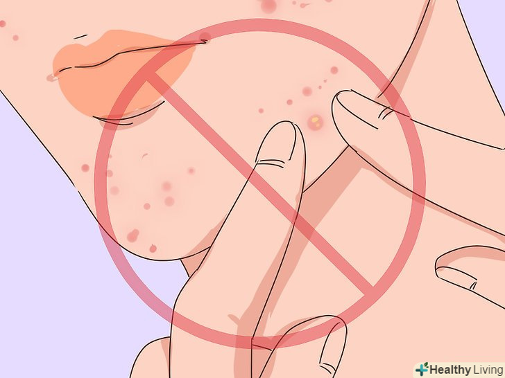 Уникайте спокуси тиснути прищі.хоча, можливо, вам хочеться видавити прищ, ви повинні протистояти цьому бажанню. Видавлювання прищів призводить до ще більшого почервоніння і припухлості шкіри. Крім того, натискаючи на область прища, ви сприяєте тому, що бактерії і гній потрапляють глибоко в пори шкіри. Через це лікування прища може зайняти більше часу.[19]- Видавлювання прища також може привести до утворення рубців.