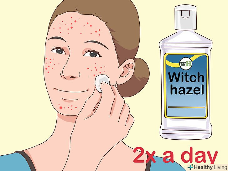 Зробіть медову маску.мед – натуральний антибактеріальний засіб, який очищає пори шкіри. Крім того, мед очищає шкіру від надлишок шкірного сала і мертвих клітин шкіри.[14] нанесіть мед на все обличчя і не змивайте якомога довше. На додаток нанесіть мед на область прищів і покрийте їх ватно-марлевою пов'язкою. Залиште мед на шкірі обличчя на всю ніч.- Змийте мед з шкіри обличчя теплою водою. Якщо вам не вдається видалити мед з особи, застосовуючи тільки теплу воду, використовуйте засіб для вмивання.
