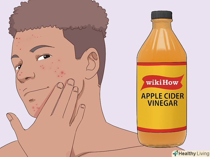 Використовуйте яблучний оцет.яблучний оцет має антибактеріальні та протимікробні властивості.[13] використовуйте яблучний оцет щоб зменшити кількість прищів. Нанесіть його на все обличчя в якості тоніка або тільки на область прищів. Якщо у вас чутлива шкіра або ви відчуваєте печіння, розбавте яблучний оцет водою.