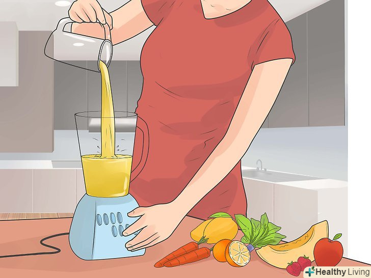Приготуйте смузі.ви можете приготувати поживний, висококалорійний смузі, змішавши молоко або йогурт з будь-яким фруктом або овочем, і перемішавши все це в блендері. Експериментуйте з інгредієнтами та їх співвідношенням, поки не знайдете те, що вам сподобається. Ви також можете купити вже готовий смузі в більшості супермаркетах.[8] Приготуйте смузі.ви можете приготувати поживний, висококалорійний смузі, змішавши молоко або йогурт з будь-яким фруктом або овочем, і перемішавши все це в блендері. Експериментуйте з інгредієнтами та їх співвідношенням, поки не знайдете те, що вам сподобається. Ви також можете купити вже готовий смузі в більшості супермаркетах.[8]
