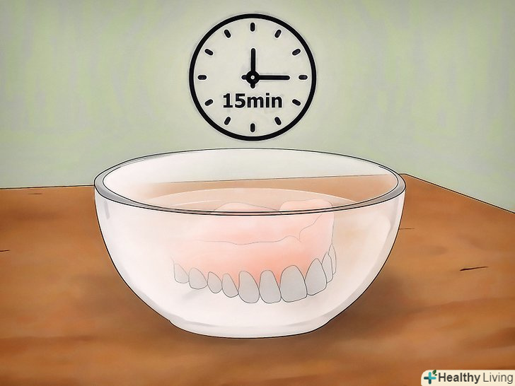 Замочуйте зубні протези щодня по 15 хвилин.золоте правило для часткових знімних протезів: щодня замочувати їх в розчині оцту на 15 хвилин. Цього часу повинно вистачити, щоб пом'якшити зубні відкладення, але при цьому не пошкодити металеві затискачі на часткових протезах.[6]