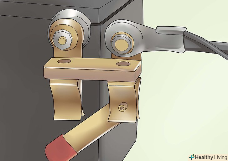 Знову підключіть клему проводки до позитивного висновку акумулятора і надійно затягніть кріплення.